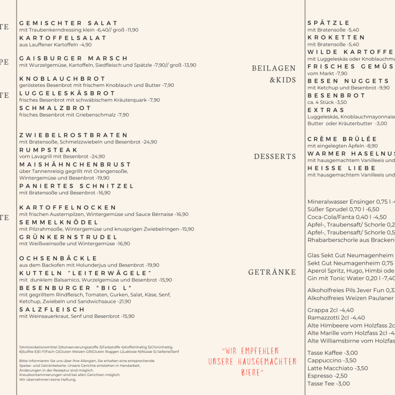 Wir öffnen zum ersten Mal im neuen Jahr unsere Türen! Endlich können Sie sich wieder unsere herzhaften Besengerichte, zusammen mit leckeren Bieren der Biermanufaktur Cleebronn, schmecken lassen.